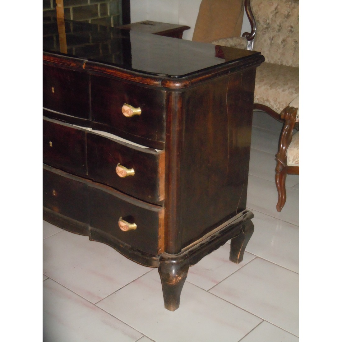Como' anni 40 decò a 3 cassetti pomi in osso cm 125x53 h 90