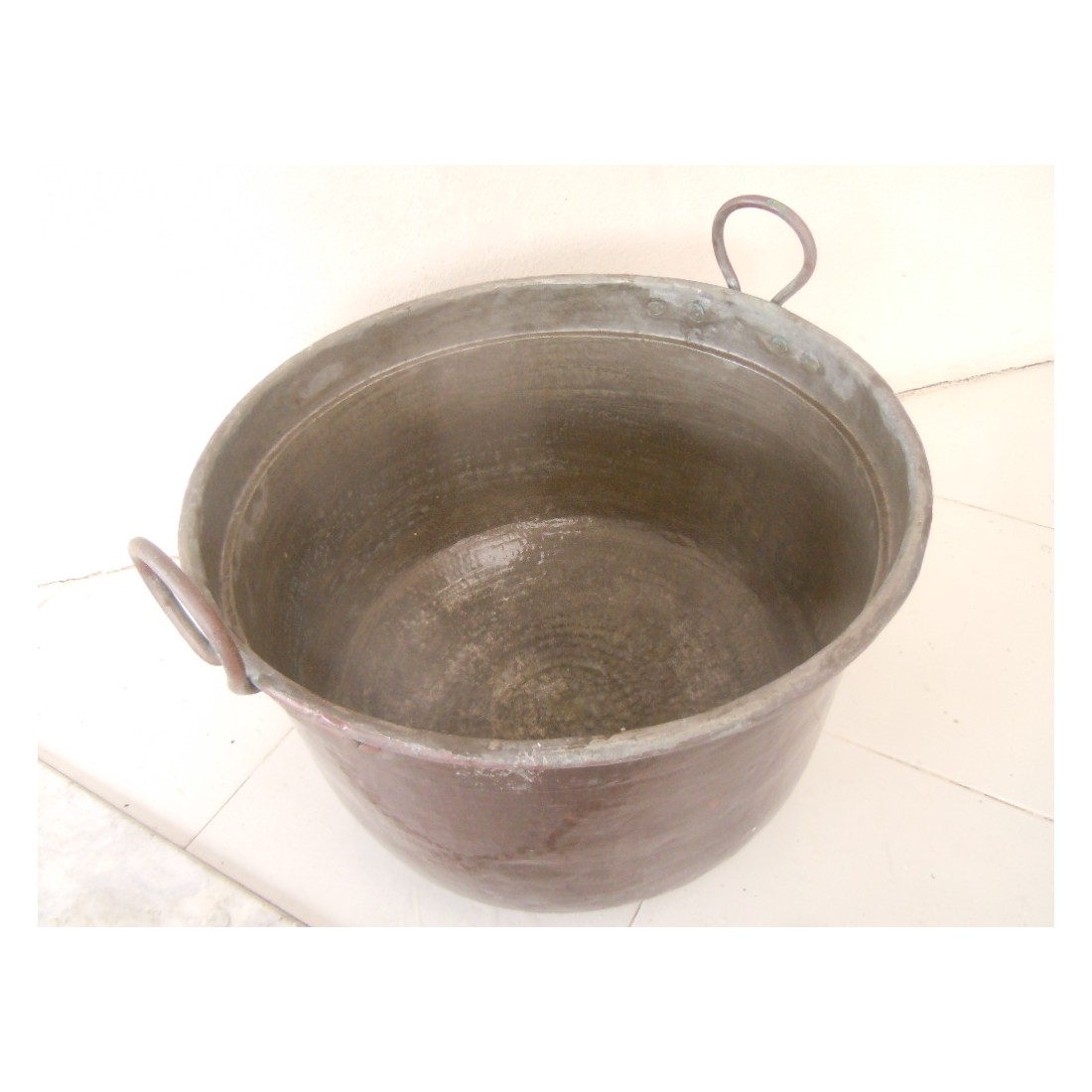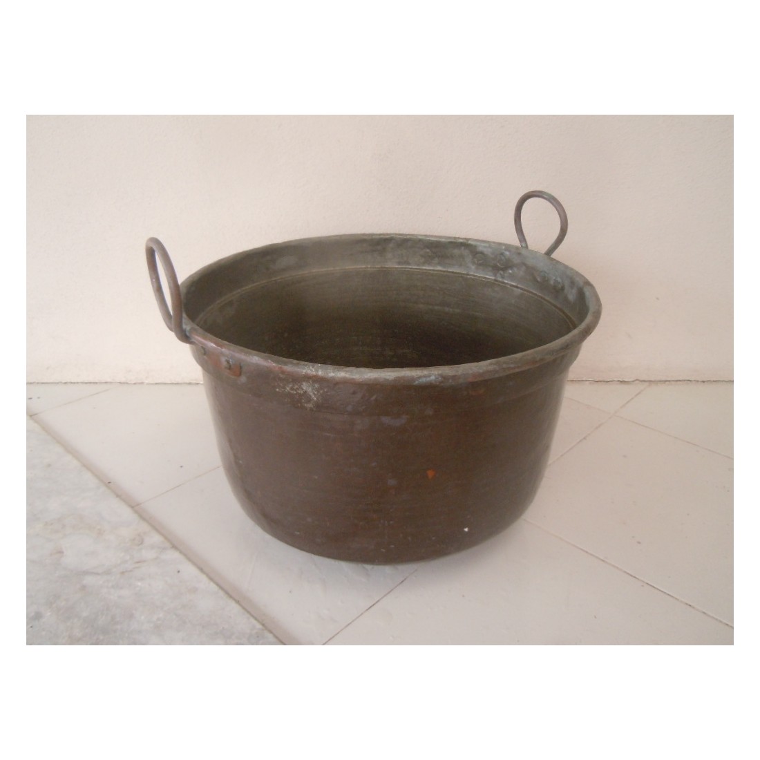 Vecchio pentolone pentola in rame altezza cm 32 altezza ai manici cm 40 diametro superiore cm 50 in ottime condizioni naturale patinatura del tempo
