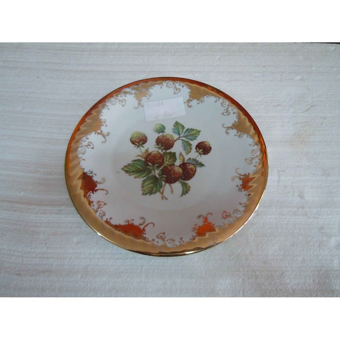 Piatto centrotavola in porcellana Bavaria Atlantis decoro fragole bordo in oro zecchino diametro cm 27 leggere usure del tempo
