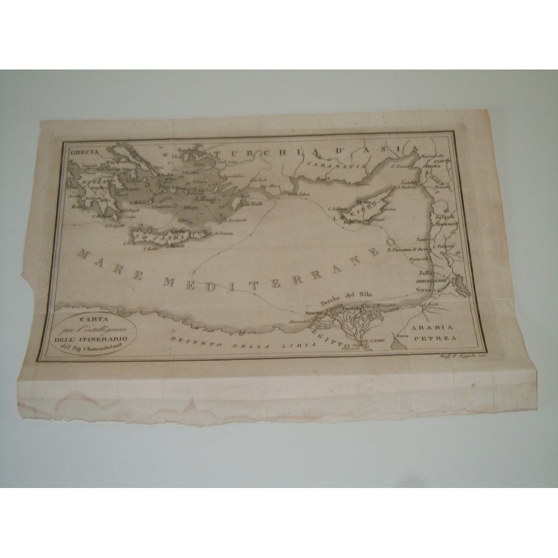 Incisione Chateaubriand carta dell'itinerario Parigi Gerusalemme D' Angelo incisore cm 29.5x23 fine 800 buone le condizioni pieghe di chiusura