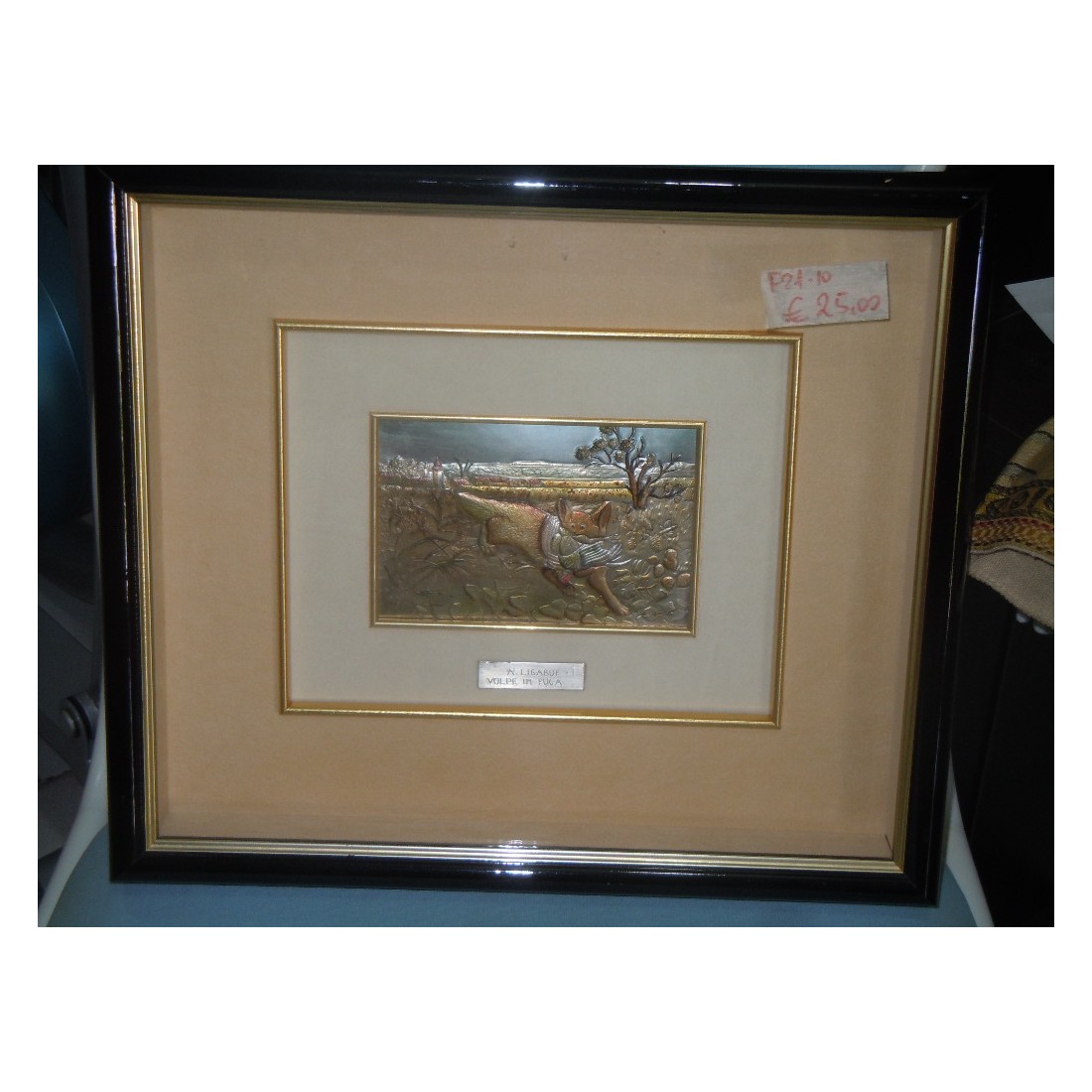 Quadro in lamina argento in passepartout tecnica a sbalzo Volpe in fuga A Ligabue garanzia Arin cornice cm 40x35 opera cm 14x9,5