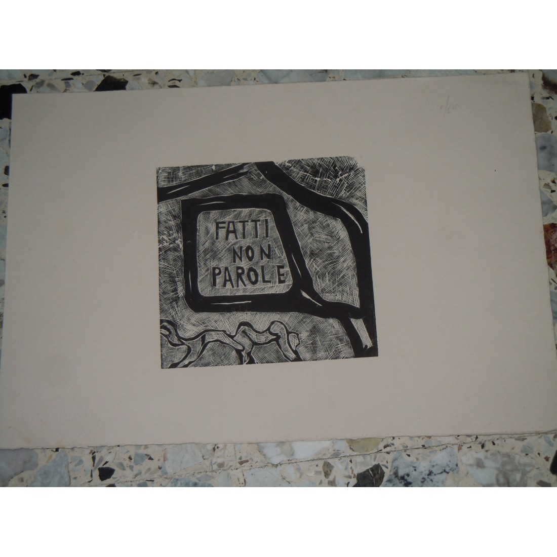 Incisione su cartoncino Fatti Non Parole cm 50x35 senza firma