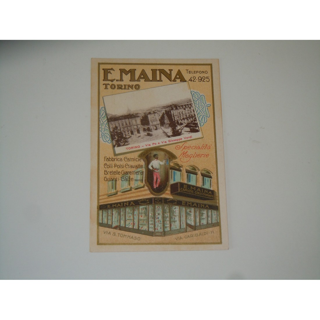 Cartolina pubblicitaria Maina Torino panorama e ponte Umberto