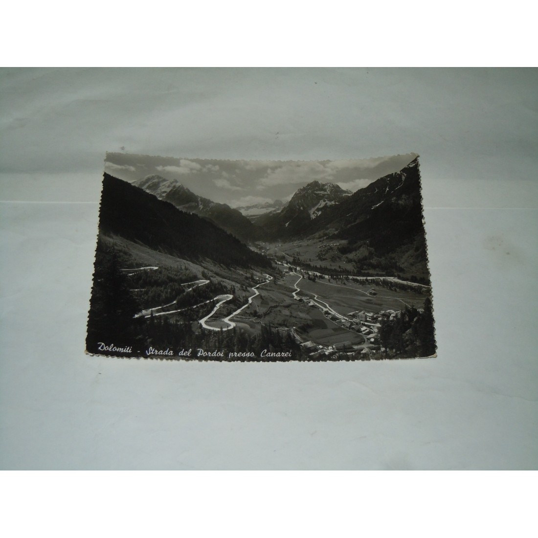 Cartolina Dolomiti Belluno strada del Pordoi presso Canarei viaggiata