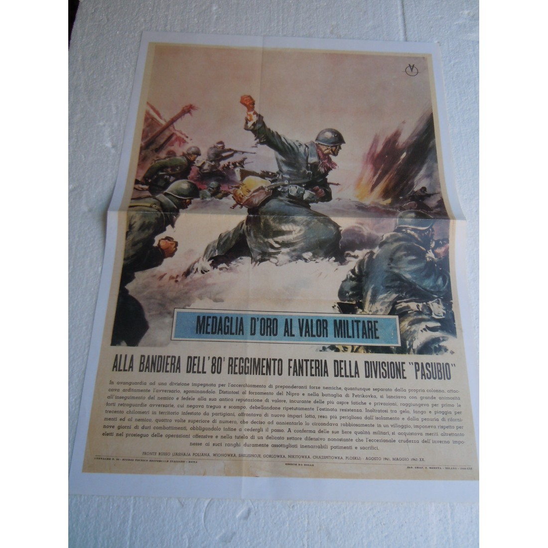 Manifesto Alla bandiera dell'80 rgt Pasubio fascismo copia riproduzione cm 50x35