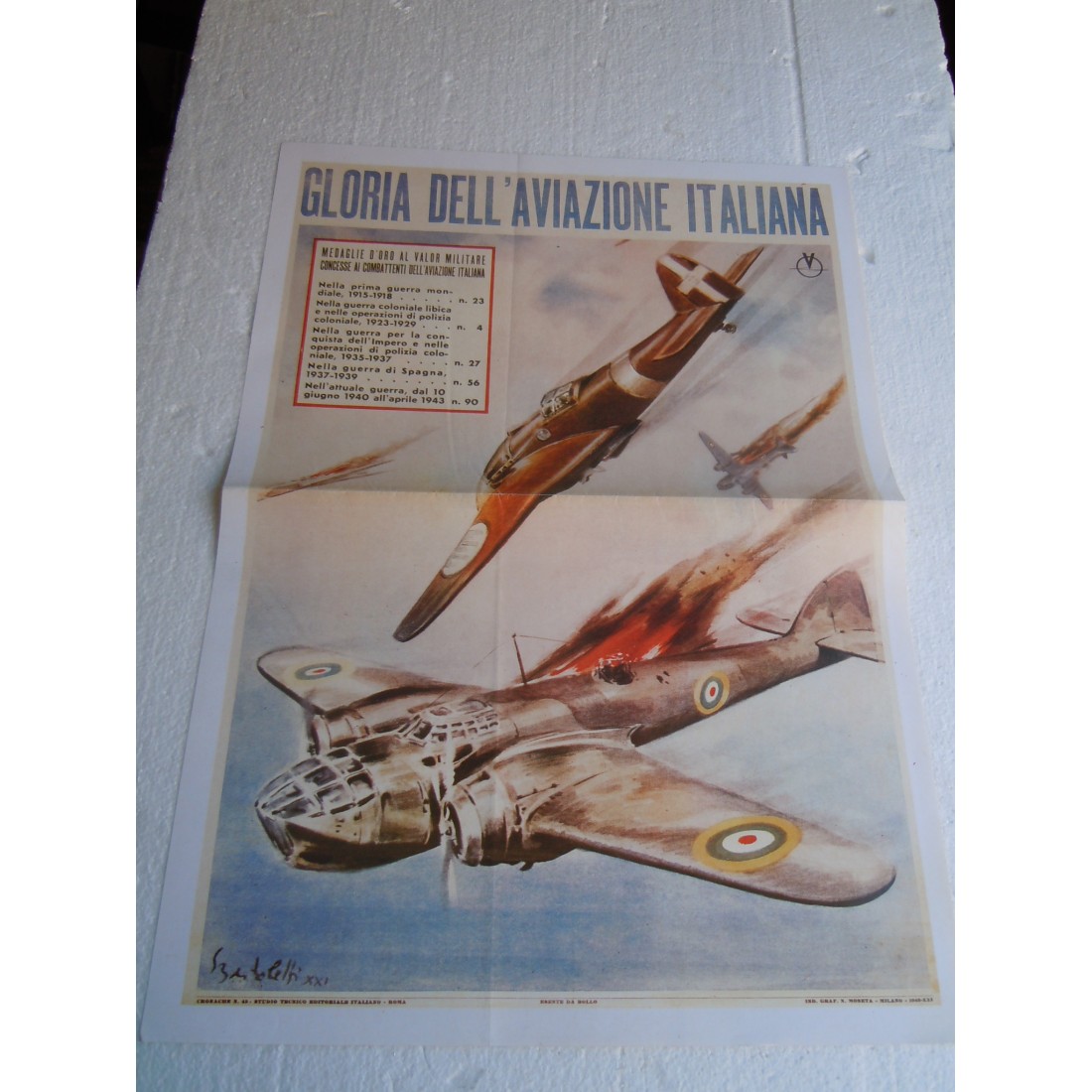 Manifesto Gloria dell'aviazione italiana fascismo copia riproduzione cm 50x35