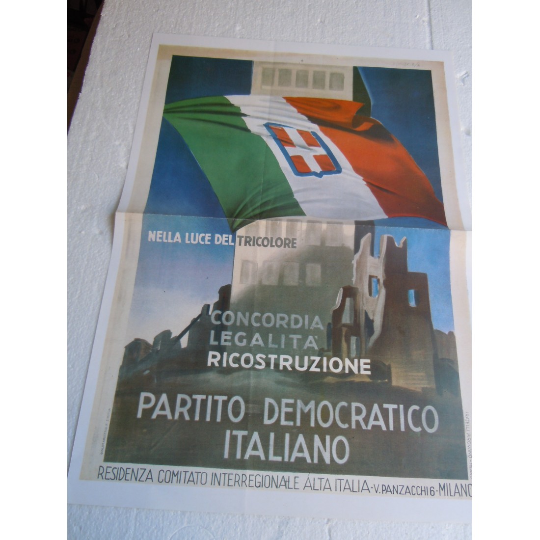 Manifesto nella luce del tricolore fascismo copia riproduzione cm 50x35