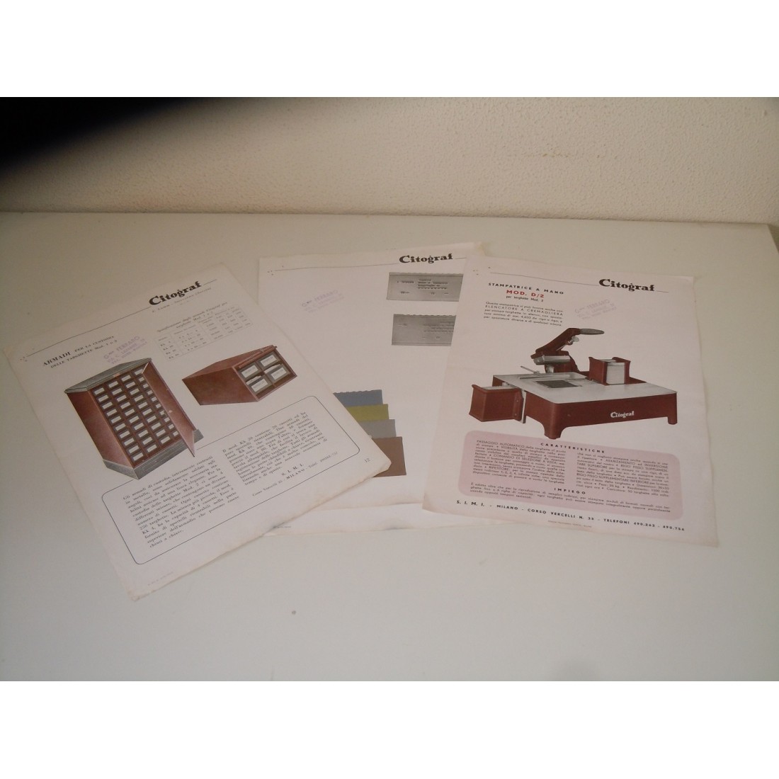 Pubblicità advertising Citograf stampatrice a mano 3 deplians come da foto