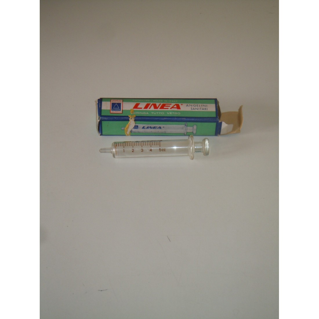 Vecchia siringa in vetro da 5 cc linea Angelini scatola non perfetta come d foto