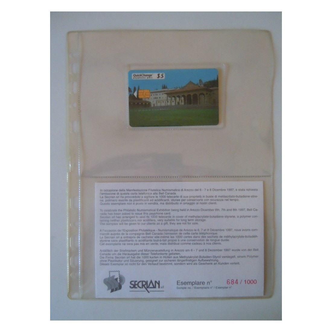 Scheda telefonica Arezzo nuova in folder Secrian 1997 prodotta dalla Bell Canada il numero dell'esemplare potrebbe non essere quello indicato in foto