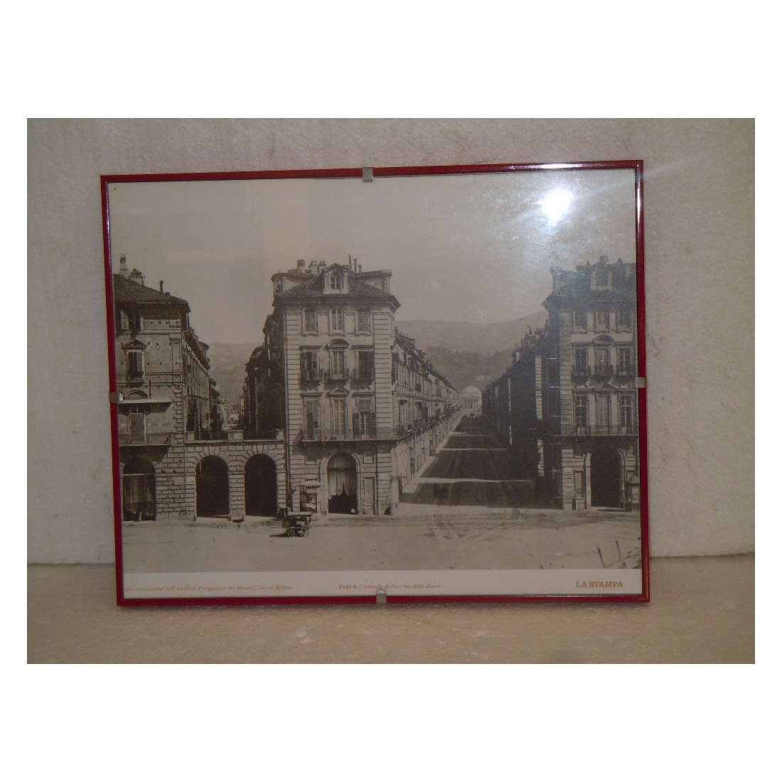 Fotografia vecchia Torino contrada di Po e via della Zecca in bella cornice a giorno cm 31x25