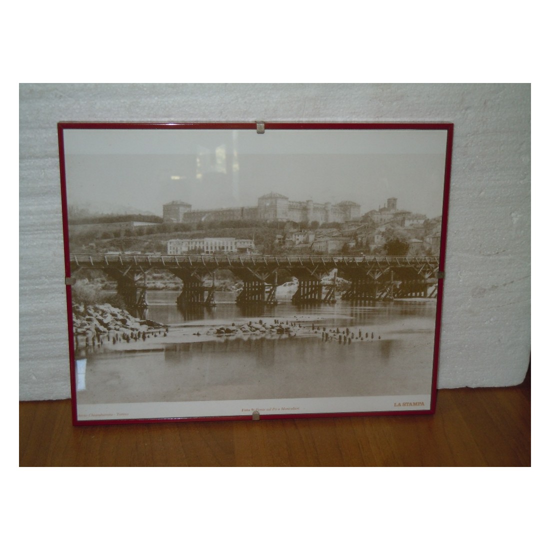 Fotografia vecchia Torino ponte sul Po a Moncalieri in bella cornice a giorno 31x25
