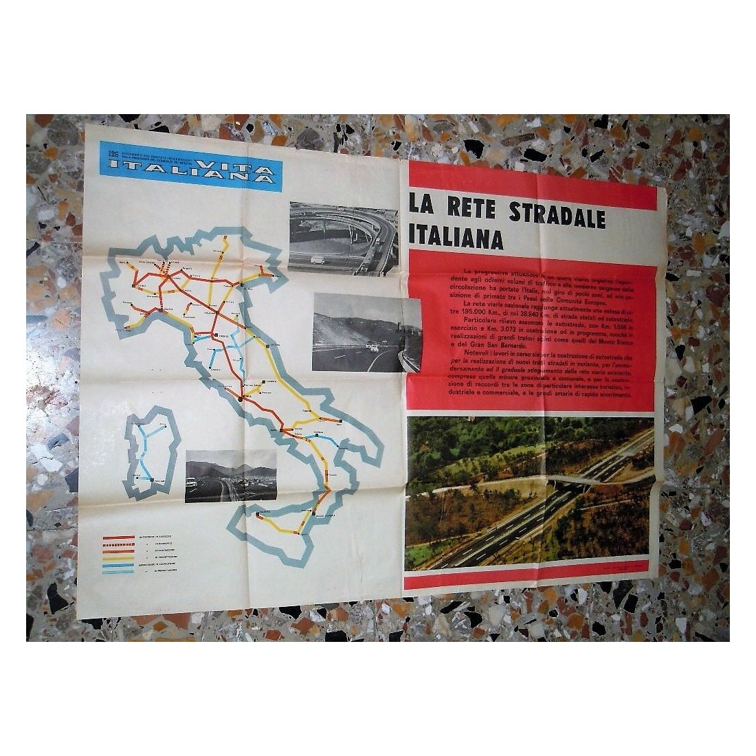 Manifesto vita italiana la rete stradale 1965 cm 100x70 pieghe di chiusura e alcune pieghette di carta