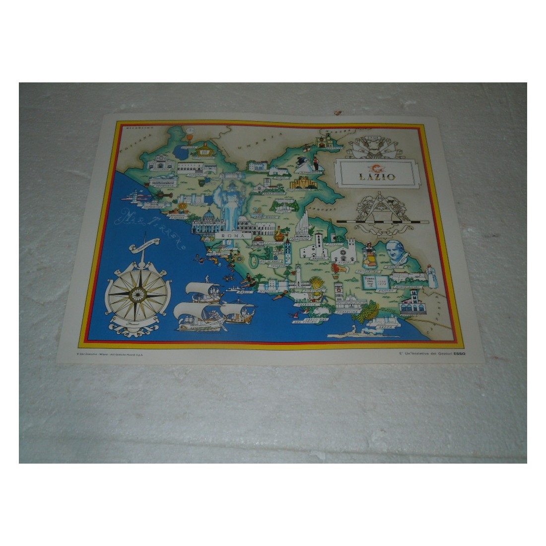 Cartina geografica Lazio omaggio gestori Esso arti grafiche Ricordi