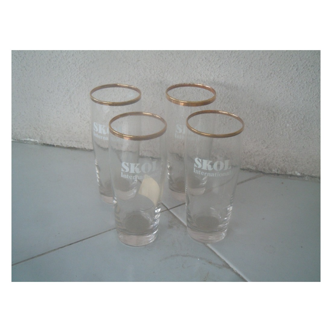 4 Pezzi bicchiere vetro pubblicitario birra Skol