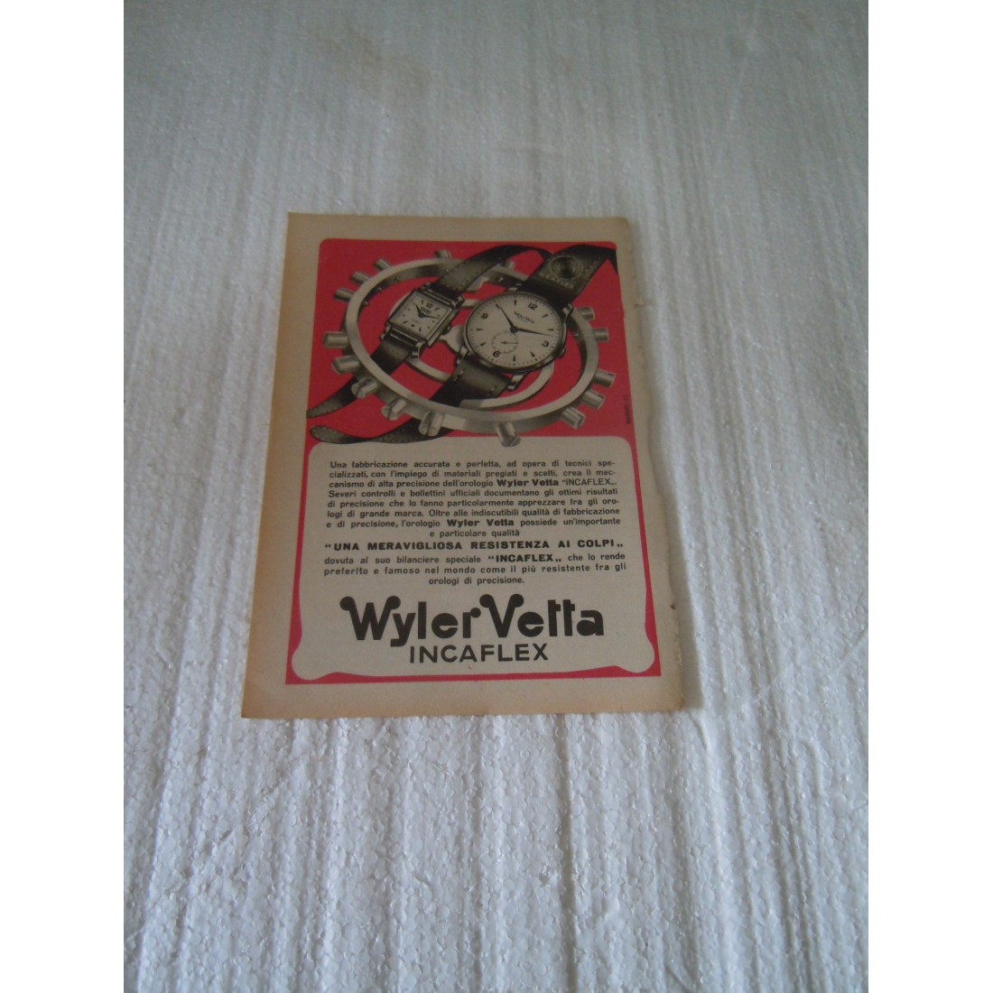 Pubblicità advertising Wyler Vetta Incaflex orologi