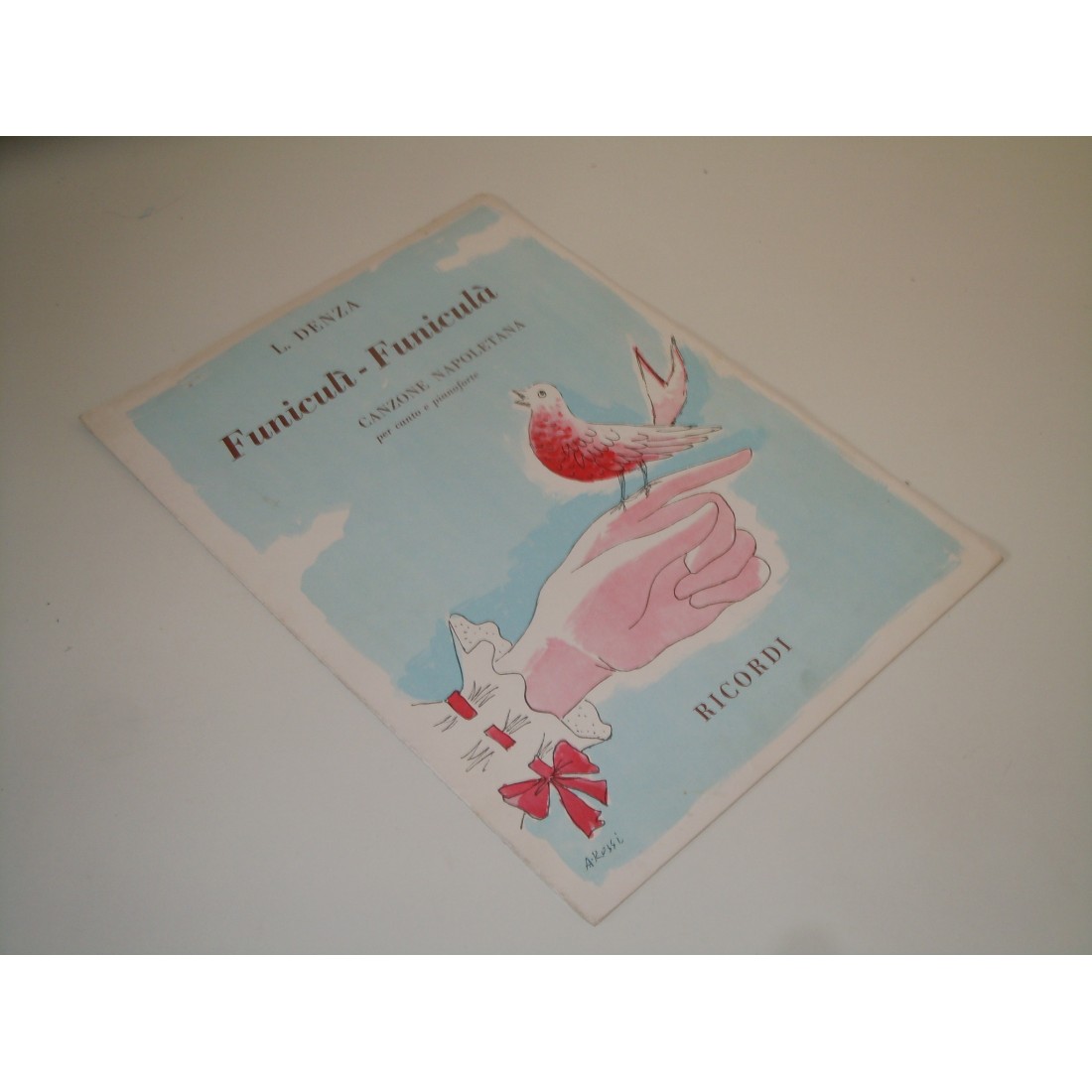 Vecchio Spartito musicale Funiculì Funiculà Denza canzone napoletana per canto e pianoforte Ricordi editore buone le condizioni