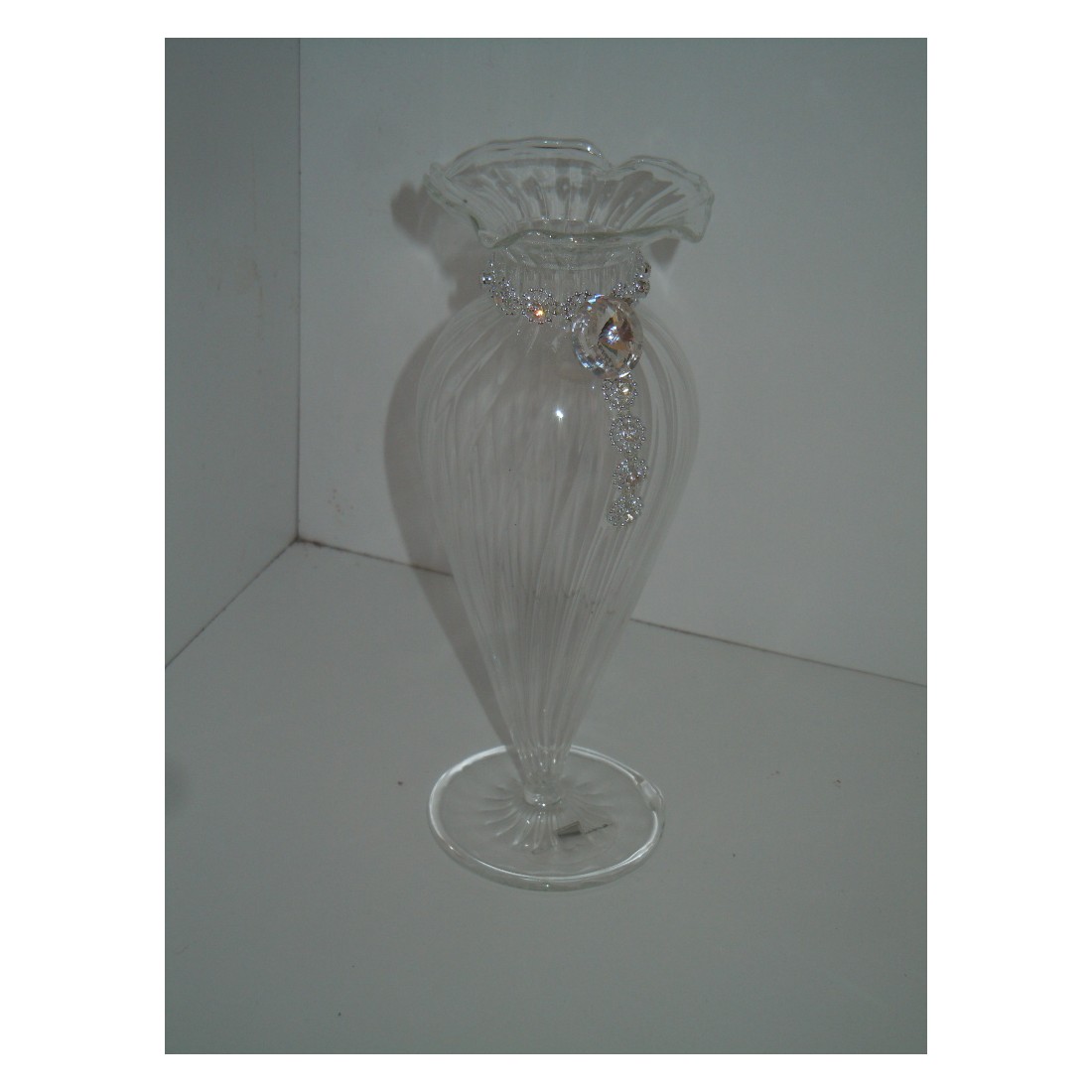 Vasetto portafiori Claraluna in vetro soffiato e strass altezza cm 16,5 nuovo con scatola