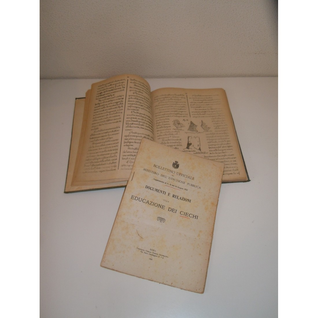 in allegato bollettino dell istruzione pubblica sulla educazione dei ciechi libro stampato in carattere corsivo su due colonne in rilegatura coeva con varie illustrazioni interne cm 27x19 ingiallimenti del tempo e macchie di umido sulle copertine