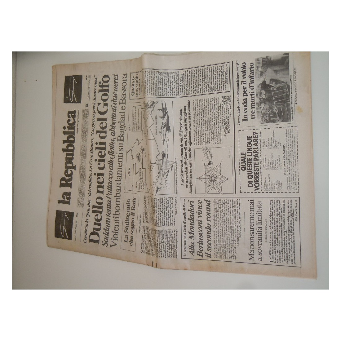 Quotidiano La Repubblica 25 Gennaio 1991 duello nei cieli del golfo