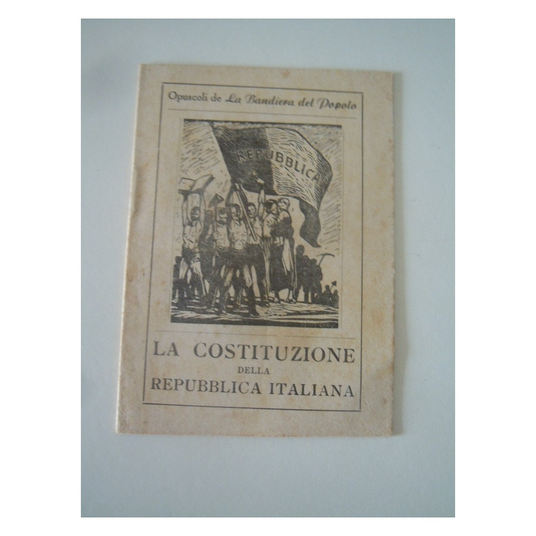 La costituzione italiana opuscolo de la bandiera del popolo giornale mazziniano cm 12x8.5 pagine 16 edito da società anonima poligrafica italiana anni 50?? ingiallimenti del tempo