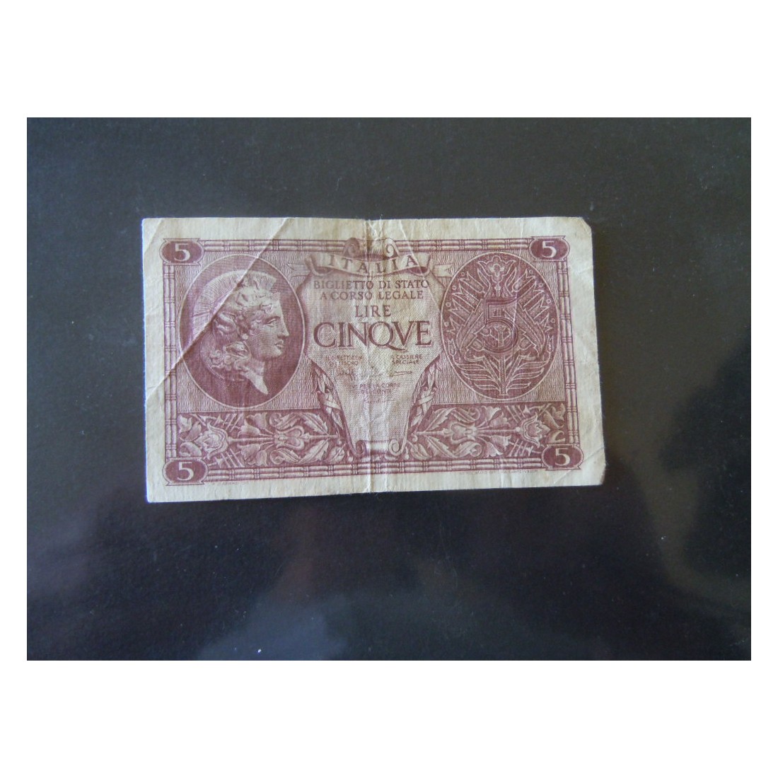 Banconota 5 lire testa Atena 23/11/1944 Italia luogotenenza MB/BB quella nella foto